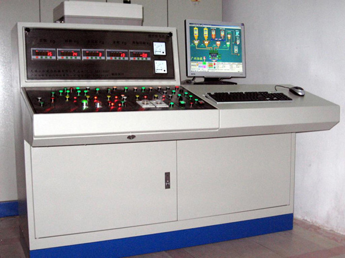 雙機90攪拌站電氣控制系統(tǒng)主要由控制臺以及交流接觸器等為核心的強電控制組成,全套系統(tǒng)均安裝在控制室內(nèi),可完成配料、提升、攪拌、卸料生產(chǎn)全過程的自動、半自動控制。