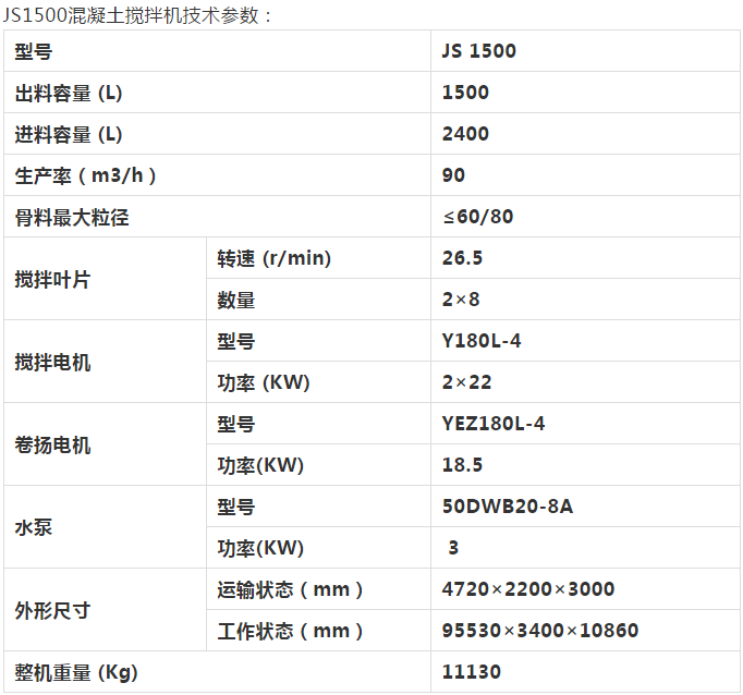 JS1500混凝土攪拌機是目前國內(nèi)外先進(jìn)、理想的機型,具有自動化程度高、攪拌質(zhì)量好、效率高、能耗低、噪音小、操作方便、卸料速度快、襯板及葉片使用壽命長,維修保養(yǎng)方便等優(yōu)點。適用于塑性、干硬性、輕骨料混凝土及各種灰漿、砂漿的攪拌。本機采用機動出料,能與翻斗車配套使用,是各種建筑工地的理想機具。